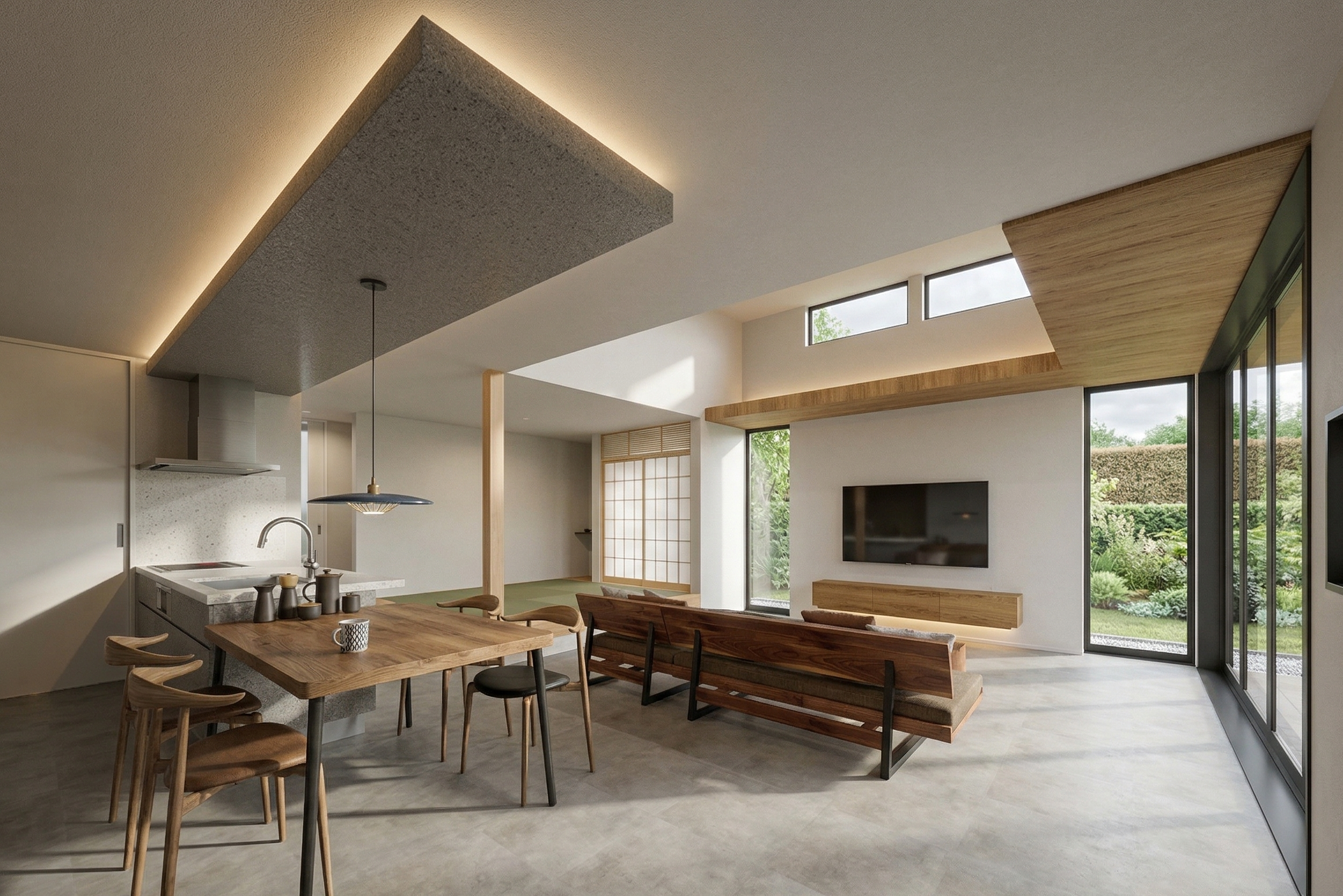 吹き抜けの光や木の質感を最大限に活かす設計と